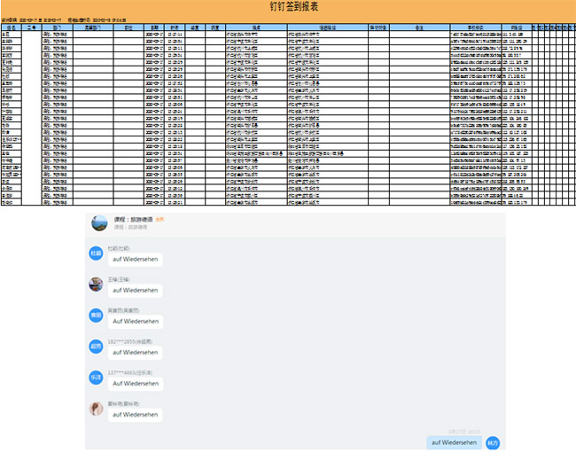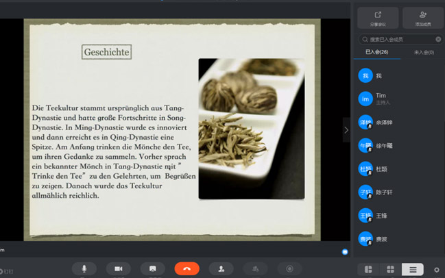 签到和道别老师在课程须知中要求学生每次课提前五分钟进行签到,并在结束时作德语道别。一个月下来学生们完成情况很好,满满的仪式感让课堂有始有终、自成一体,同时也赋予课堂一种天涯若比邻般的云端亲近,拉进彼此的心理距离。