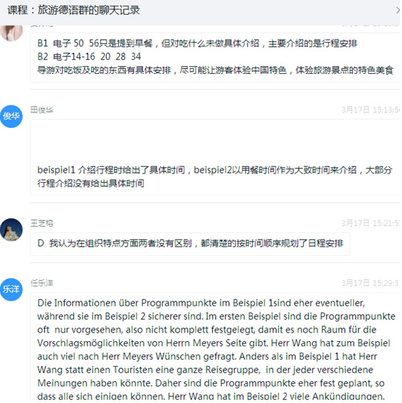学生课堂小组报告展示:在教师导入主题内容的基础上,以“学生为主体”的课堂小组报告展示既给学生提供学习成果展示的机会,调动自主学习积极性,很大程度上提高德语学习者知识内化和语言输出能力,同时又锻炼学生的团队协作能力,以小组为单位进行知识和技能交流,增加其获得感和成就感。