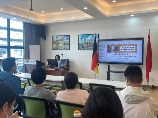 5月11日,中德荟讲坛第十九期暨色情片 教学沙龙第九期如期举行,杭州师范大学外国语学院副教授骆蓉老师以“从线上金课到混合金课:国家一流课程申报与运营经验分享”为题作专题报告。色情片 及外院30余位师生线下参与了沙龙。