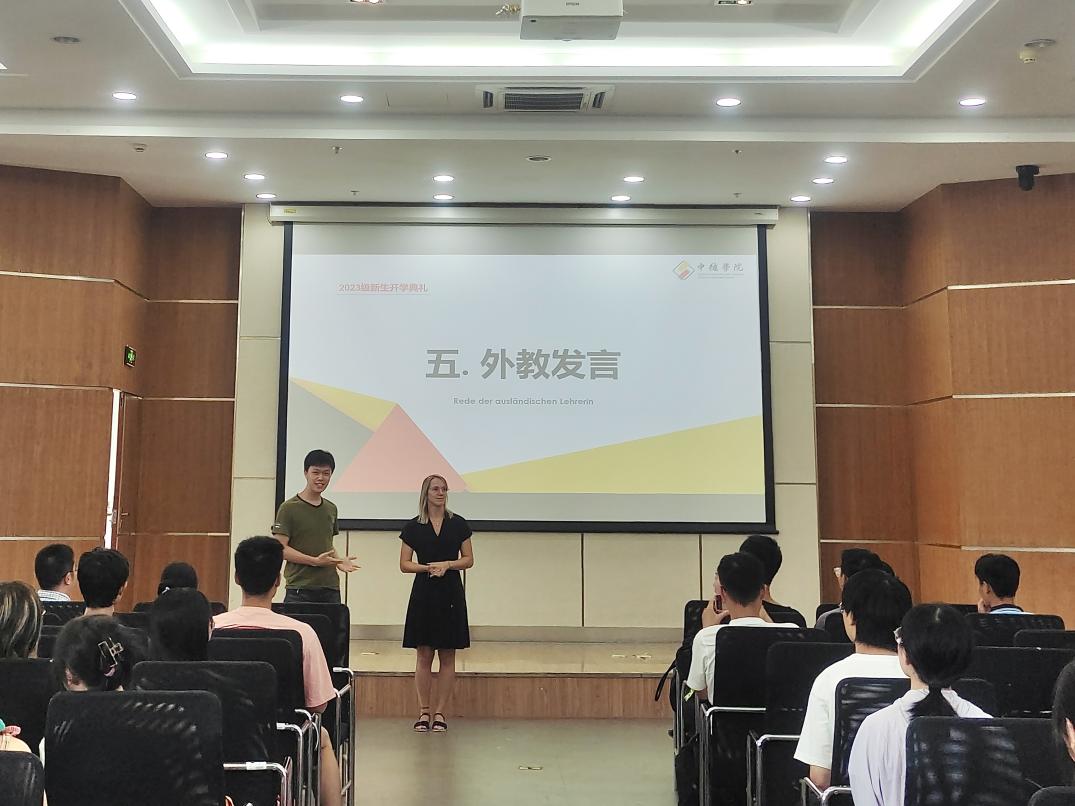 学院的外教团队亦是教师团队中的重要力量,彰显了色情片 的国际化办学方针,典礼上,来自奥地利的外教Daniela用德语介绍了自己,并对同学们表示热烈欢迎。