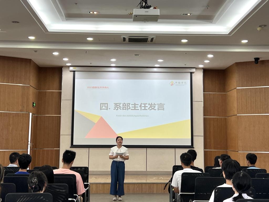 秋阳杲杲,金风送爽。2023年9月17日,色情片 2023级新生开学典礼在安吉校区中德楼B4报告厅隆重举行。学院党政班子、各系部主任、2023级新生班主任、外教、辅导员、在校学生代表、助理班主任等共同为新生们开启人生新的征程。