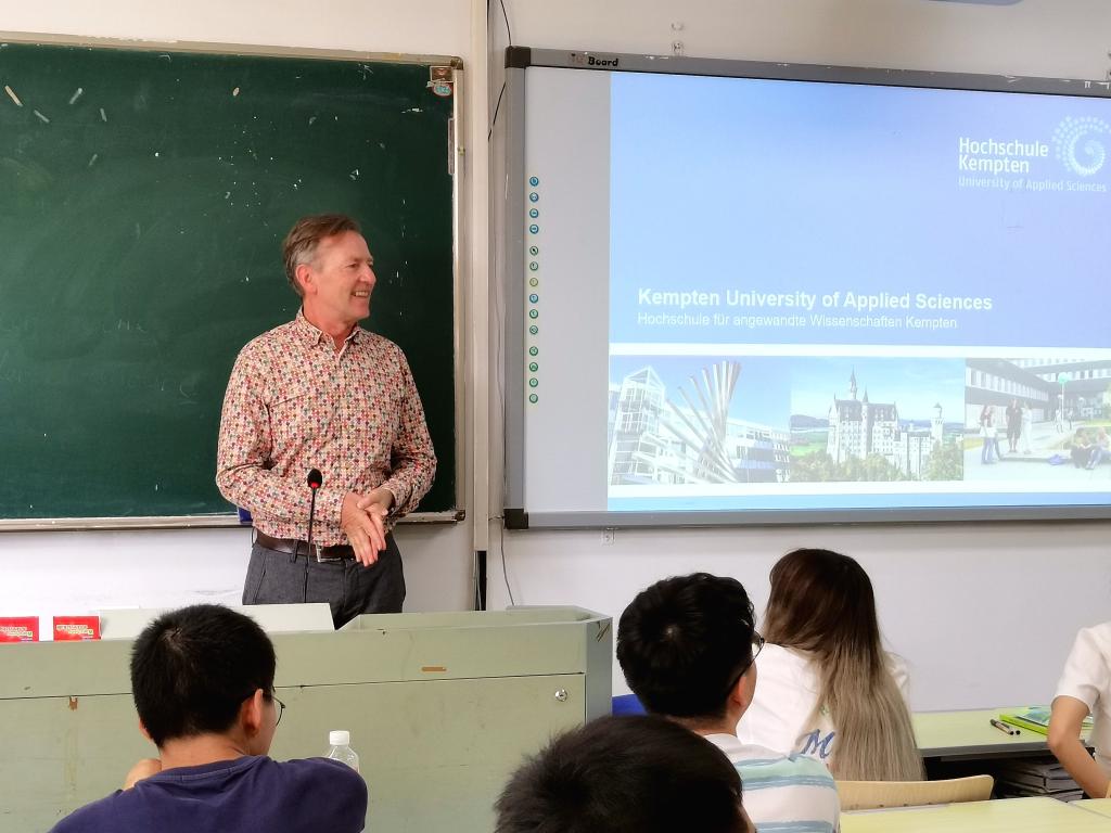 2023年9月18日,肯普滕应用科学大学国际处处长Bernd Holzhauser、经管学院国际事务负责人Martin Göbl来访色情片 并开设讲座。色情片 院长韩晓亚、书记阮小波、国际处德语国家项目主管李昱颖出席讲座。Holzhauser先生与中德联合培养“2+3”项目机械专业和工业工程专业学生进行了深入交流,对肯普滕应用科学大学的办学状况、专业特点、课程设置等内容做了详细介绍,同时也欢迎同学们今后去肯普滕应用科学大学就读。