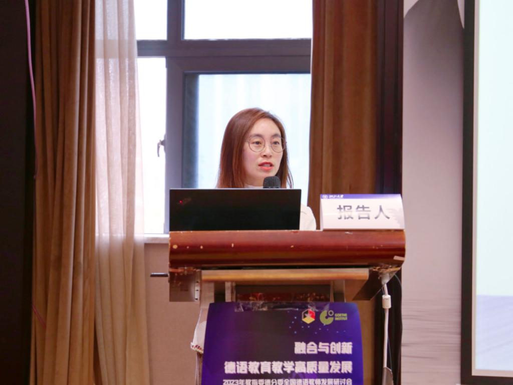 3月3日至3月5日,2023年全国德语教师发展研讨会在浙江大学顺利举行。本次活动由教育部高等学校外国语言文学类专业教学指导委员会德语专业教学指导分委员会全国德语教师发展中心主办,浙江大学德国文化研究所、北京德国文化中心·歌德学院(中国)承办,外语教学与研究出版社、上海外语教育出版社支持,共有来自全国30多所高校的70余位嘉宾及教师参会。林方副教授受邀参会,并作题为《以赛促改,教研合一-青教赛参赛体会和教学设计 》的会议报告,分享自己参加青年教师教学技能竞赛的心得体会,介绍相关的教学设计。在圆桌论坛环节,林老师浙江大学刘永强副教授和吉林外国语大学陈洋洋副教授继续就教学与科研、教学竞赛与日常工作之间的关系等问题展开讨论。