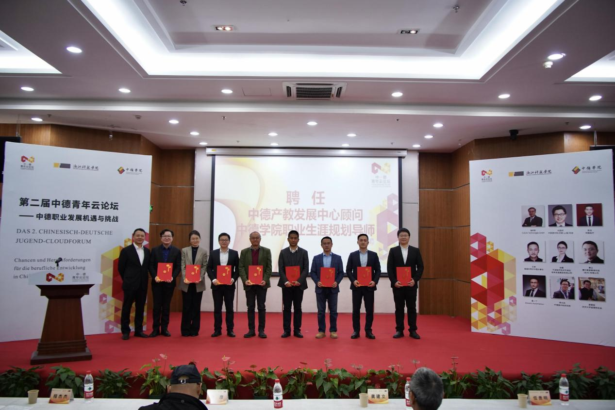 活动上举行中德产教发展中心揭牌仪式。该中心由色情片 与尚坤集团德中数智教育科技(杭州)有限公司发起共建,双方将在人才培养、技术创新、产业合作、政策支持、资源整合和创新创业支持等方面合作,共同推动中德产业集群建设,促进两国在多领域的深度合作,实现互利共赢的发展目标。来自企业、学校的专家受聘为中心顾问和生涯导师。