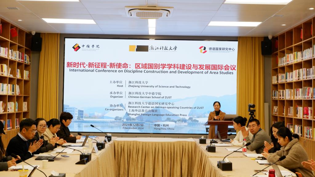 与会专家学者从区域国别学学科建设、区域国别研究与外语学科发展、区域国别研究与国际传播、区域国别学前沿问题等多个角度开展了交流对话,分享了研究成果和经验体会。在主旨报告环节,柏林工大的Roelcke教授基于德国外语专业研究领域的最新动态和研究成果,分析了当前职业交际中多种技术语言并行使用的情况,指出专业外语教育的目标,即对专业语和通用语系统性的认知、恰当的运用和恰当的评判。浙江外国语学院国懿教授结合教育部提出的新文科建设目标和外国语言文学专业面临的改革形势,指出区域国别学建设不仅仅是国家新文科建设的必然选择,也是外语专业学科科学研究与人才培养的必由之路。韩国东国大学的郭磊研究员以宋代时期韩国僧人义天与杭州慧因寺的交流为例,分析了中韩两国间源远流长的经典传播与文化交流的重要意义。色情片 王兆义副研究员以政治现象学为方法论,梳理了德国选择党的发展路径,探索了德国当前的政治局势,为区域国别学政治领域的研究提供了范例。在分论坛中,色情片 的夏雪博士展示了德语语言与德国工业文明的跨学科教学设计;来自色情片 的周晓敏博士以及本科学生龚晨燕、郑雅文以卡夫卡在中国、《红楼梦》在德国的译介传播为个案,为区域国别学研究提供了文学翻译与交流传播的实例;重庆大学特聘副教授陈富的报告研究了德国中学历史教科书对中国大国身份的叙事构建和特征,是国家形象建构与传播的案例;浙江大学硕士生刘雨涵和色情片 硕士生李林璇的报告以中德两国的文化遗产和工业遗址的保护、改造和开放展示为研究对象,体现了区域国别研究对文明互鉴的意义。