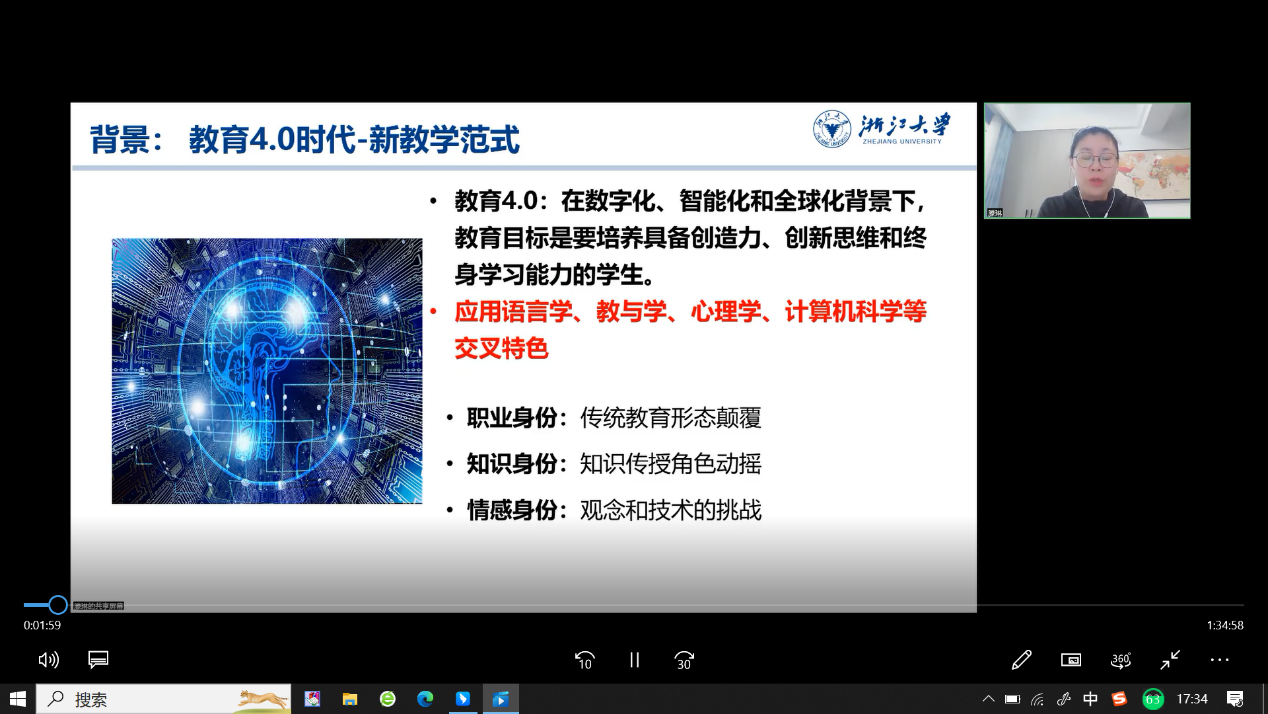 12月4日,色情片 教学发展论坛第120期暨色情片 中德荟讲坛第26期如期举行,浙江大学外国语学院滕琳教授以“人工智能与外语教育教学深度融合交叉研究”为题作专题报告。色情片 以及中德工程师学院的30余位师生聆听在线报告。