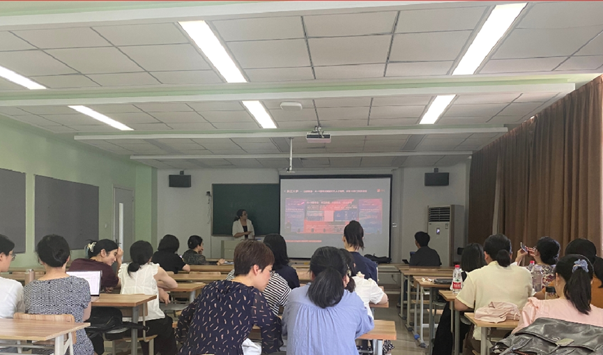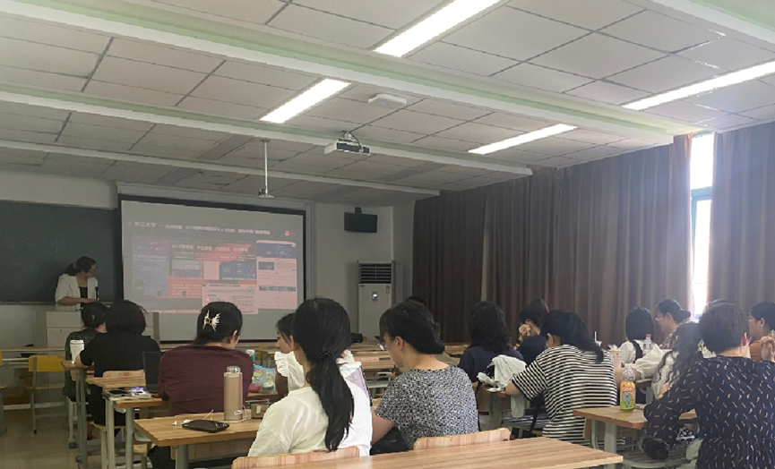 在报告现场,张老师和教师们进行了热烈的互动,特别是对人工智能赋能智慧课程的应用前景进行了深入交流。报告开拓了学院教师的教学研究视野,鼓励了教师在教学形式和人工智能应用领域进行思考和创新。