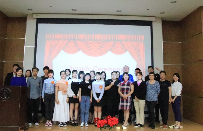 决赛在安吉校区举行,选手们提前二十分钟抽取即兴演讲题目,话题涉及方方面面,从经济、政治、教育、文化、人生到国际问题,包罗万象。选手们凭借扎实的英语能力和较强的逻辑思维能力,演讲时或慷慨激昂,或深情低沉,或诙谐幽默,博得在场所有人的阵阵掌声。外教提问环节是对选手临时应变能力的考验,选手们镇定自信,就外教提出的颇具挑战性的问题给出了精彩的回答。最后的知识速答是对选手知识面的测试,作为加分项也是气氛最轻松的环节,连在场观众都忍不住悄悄给台上选手支起了招。评委老师根据选手三个环节的表现现场打分,最终严文函等三位同学获得本次大赛的特等奖,周婧等三位同学获得一等奖,张英杰等四位同学获得二等奖,杨璟珩等五位同学获得三等奖,车振宇等五位同学获得优胜奖。