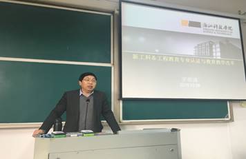 罗教授从我国工程教育现状、我国工程教育改革工程,及新工科的必要性和历程谈起,深入解读了新工科的“新理念、新特征、新知识、新模式、新机会、新人才”的六大特点和建设内涵。接着,罗教授结合工程教育专业认证标准和我校专业认证评估工作,阐释了“以学生为中心”、“以产出为导向”、“质量持续改进”的工程教育专业认证理念。他指出,工程教育专业认证的理念对学校教学工作影响深远,尤其推动了人才培养质量观的转变,既是一种高等教育办学规范,又是一种以评促建、促进专业建设改革的制度。罗教授认为,在新工科建设中,要深刻理解新工科建设的基本内涵,调整优化专业结构,落实好人才培养目标,推进跨界复合的工程人才培养。最后,罗朝盛教授呼吁抓住国家推动新工科的建设给我校带来的良好发展机遇,深刻理会和认真研讨相关政策,积极主动参与争取相应建设平台,以社会需求为导向,推进我校专业结构优化调整,切实提高我校应用型人才培养质量。