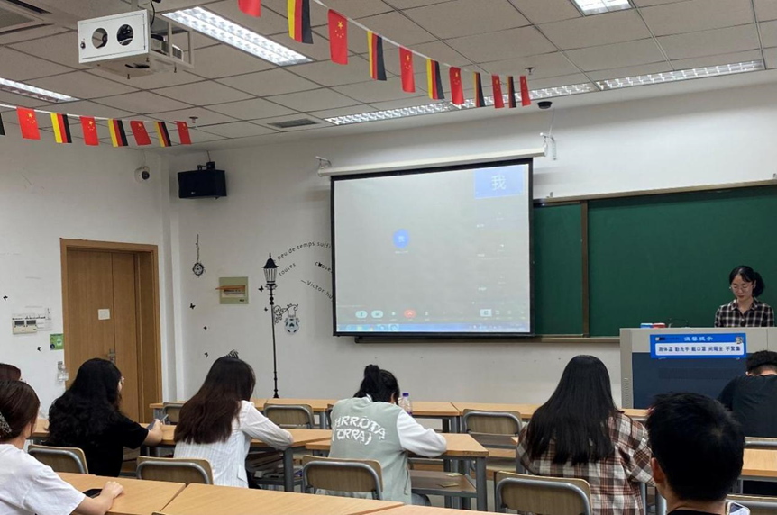 2022年4月22日,色情片 通过线上线下结合的方式举办了考研经验分享会,德语专业大二、大三同学参加。2021届毕业生蔡梦雨、梁龄丹、陈子轩和2022届陈佳凌、陆沈宁同学向学弟学妹们分享了自己考研过程中的心路历程和成功经验, 在如何选择学校,如何确定方向,各校考研录取特点以及书目推荐等方面给出了详尽的建议。