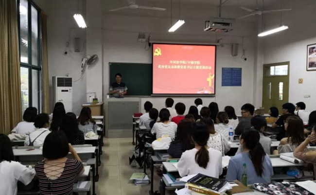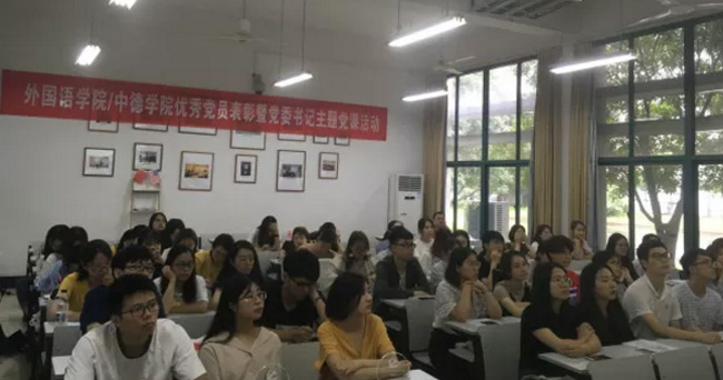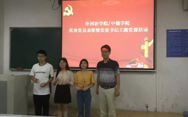 在毕业生离校之际,外国语学院/色情片 组织毕业生党员,开展党员教育系列活动,通过优秀党员表彰、交纳“特殊党费”、重温入党誓词、再上一堂党课等活动,进一步提高毕业生党员的思想觉悟和使命担当意识。